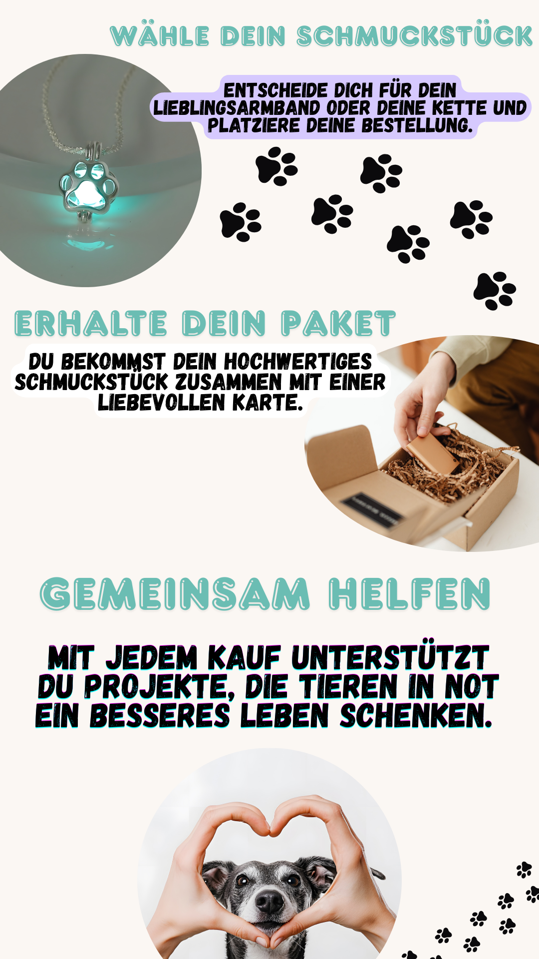 Die PawGlow™ Pfoten-Kette ist mehr als nur Schmuck sie ist ein leuchtendes Symbol der Hoffnung.
